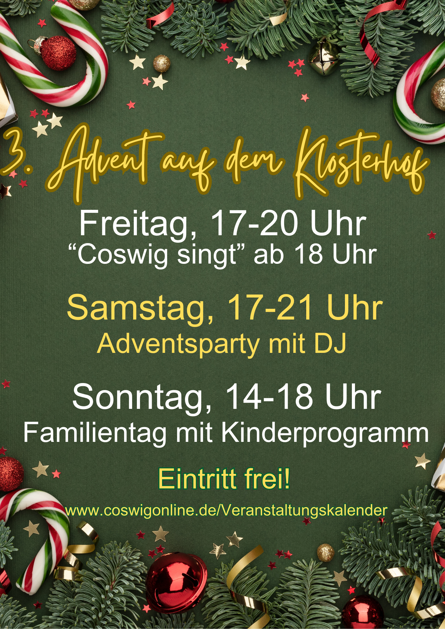 Am 12.12.2025 kann man sich ab 17 Uhr auf dem Klosterhof einstimmen, bevor ab 18 Uhr fröhlich mit Unterstützung des Projektchores gesungen wird.