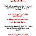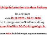 Keine Barzahlung vom 19.12.25-08.01.26 möglich