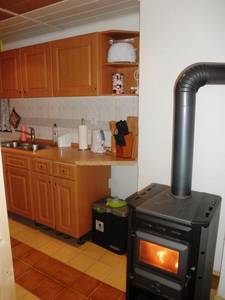 Das Haus hat einen Holzofen für Wohnzimmer und Küche und einen Elektroboiler für Warmwasseraufbereitung.