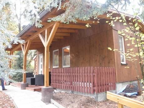 Das Haus ist 40 qm gross. Im Wohnraum befinden sich eine Sitzecke mit SAT-TV und ein separater Esstisch. Das Sofa läßt sich ausklappen und als Doppelbett nutzen.