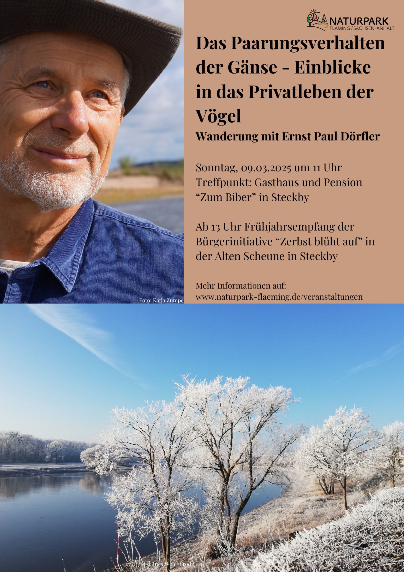 Wir laden dich zu einer Gänseführung in die Elbauen ein! Im Mittelpunkt stehen unsere heimischen Graugänse, die vor 50 Jahren noch eine große Seltenheit waren, sich inzwischen aber gut erholt haben. Der Ökologe und Buchautor Ernst Paul Dörfler wird Spannendes aus dem Leben der Graugänse erzählen – den Vorfahren unserer Hausgänse.