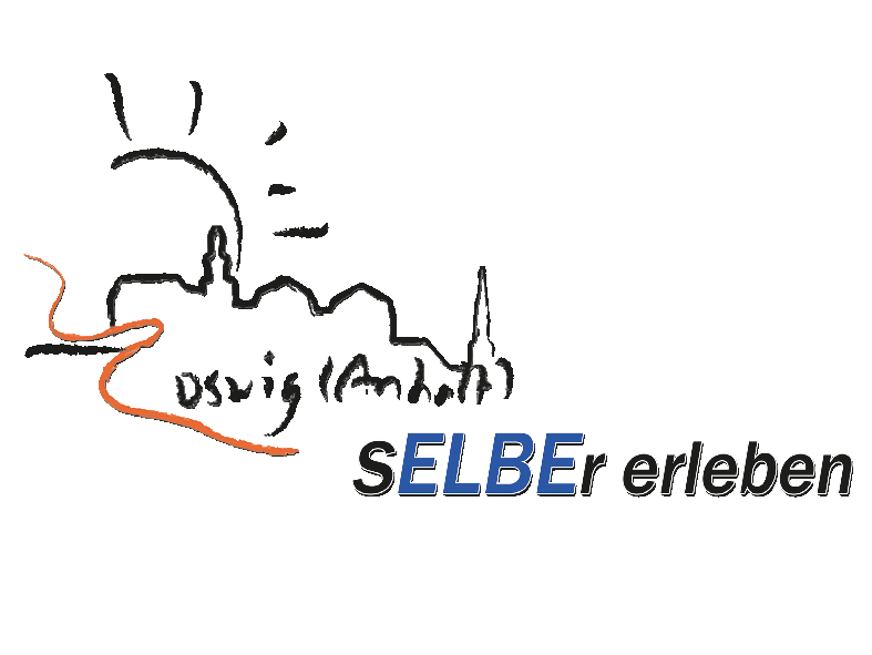 Prägend für das Logo ist der Blick vom Wörlitzer Elbufer auf die Silhouette von Coswig (Anhalt) mit dem Schloss, der St. Nicolai-Kirche und der Elbe.